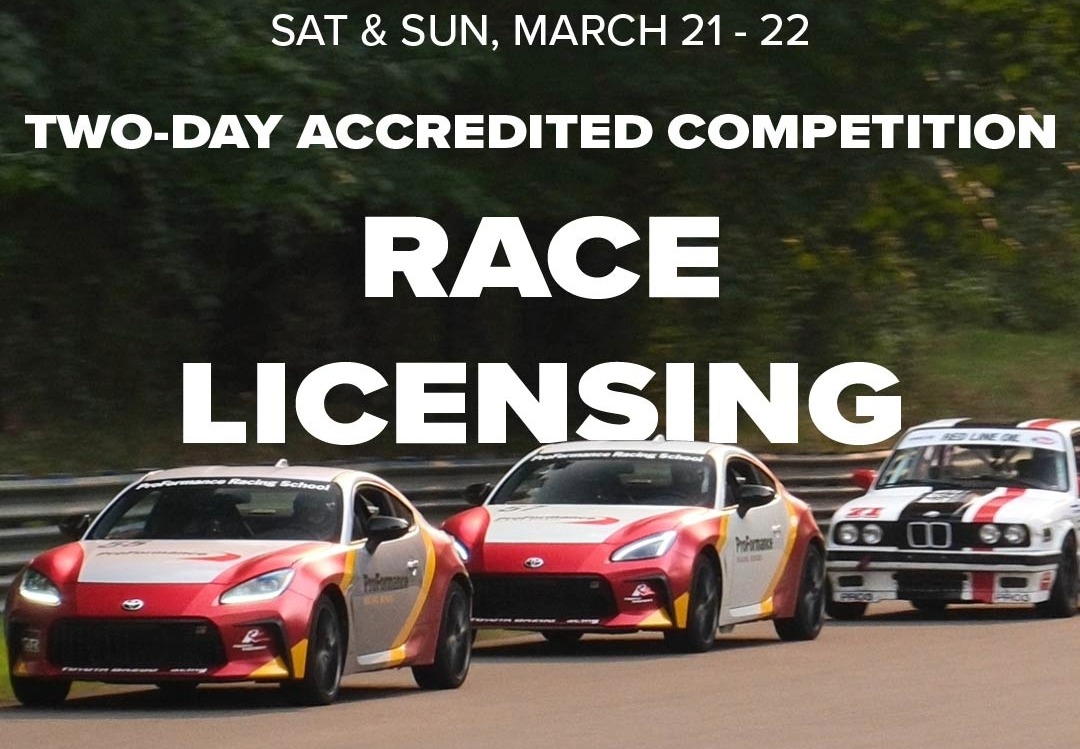 Two-Day Accredited Competition Race Licensing – Fully Accredited for SCCA, Conference, and SOVREN